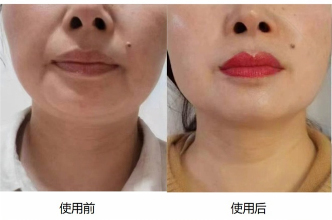 使用后狀態(tài):15天使用了產品2瓶,法令紋淡化,下頜線清晰、皮膚變緊致,更顯年輕。